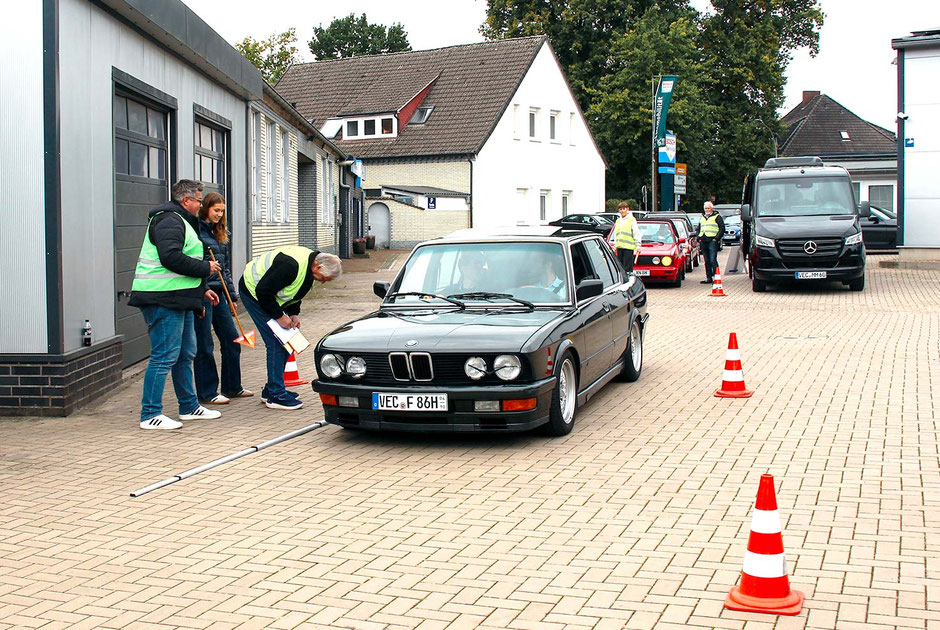 Die Leidenschaft der Fahrerinnen und Fahrer sowie die Begeisterung an der Sache sorgten von Anfang an für eine durchweg positive und mitreißende Atmosphäre. Entlang der Strecke warteten wieder verschiedene Sonderaufgaben, die die Teams nicht nur fahrerisch, sondern auch geistig herausforderten. So hatte man schon in Dinklage auf dem Betriebsgelände eines technischen Handels als erste Herausforderung für die Teams eine s.g. GLP (Gleichmäßigkeitsprüfung) mit kleiner Pylonen Gasse vorbereitet.