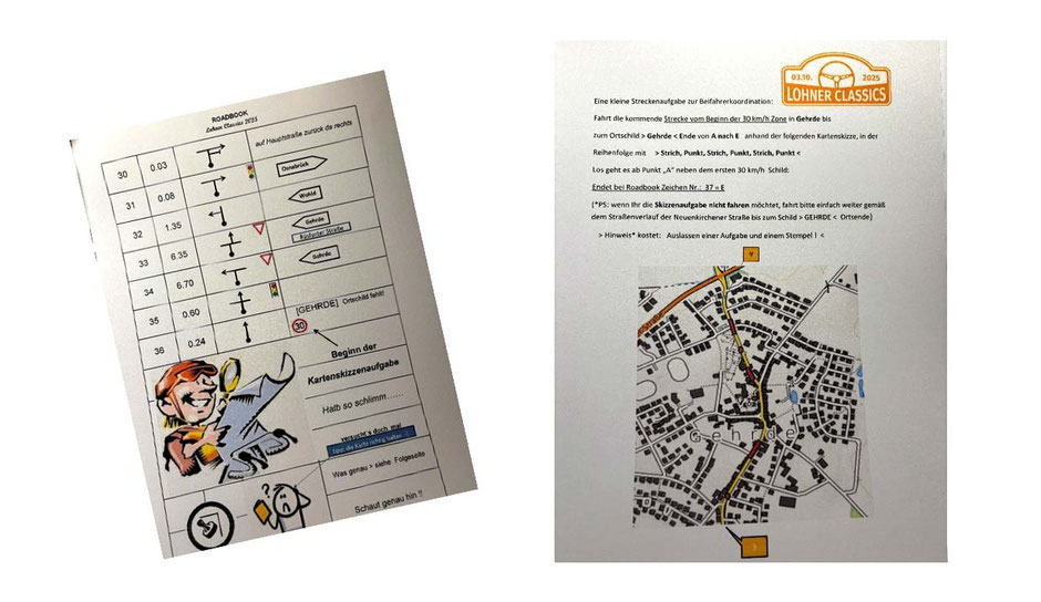 Nach dem Abarbeiten weiterer Chinesen (so werden die Kürzel und Roadbook Zeichen genannt) gelangte man in Gehrde an, wo eine Kartenskizze innerorts, mit einer kleinen Strich-Punkt-Strich Aufgabe die weitere Fahrtroute verriet.