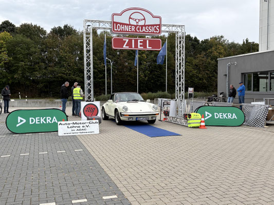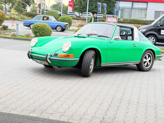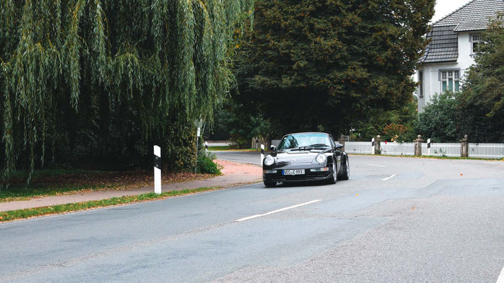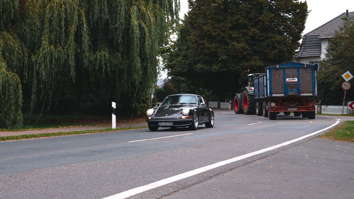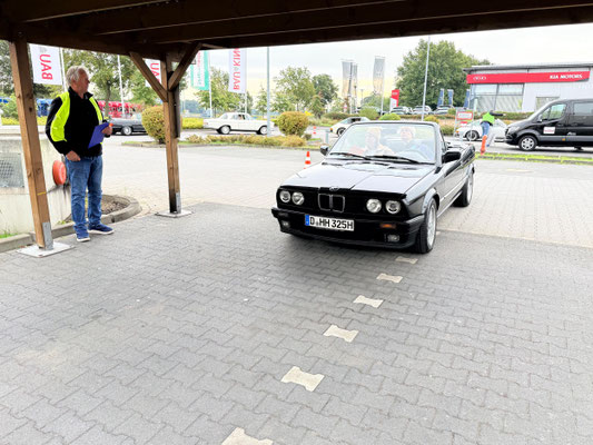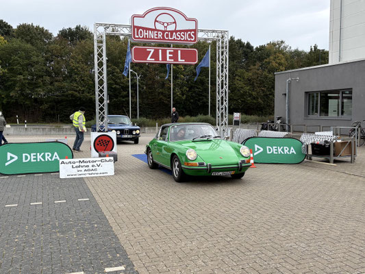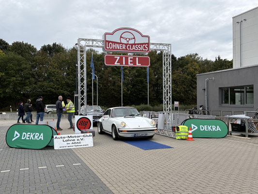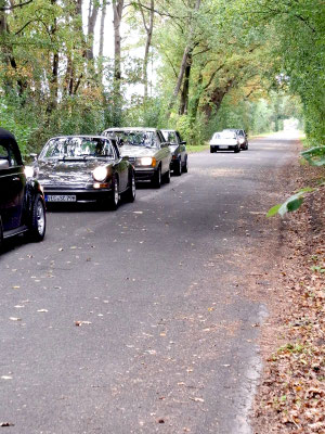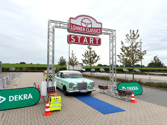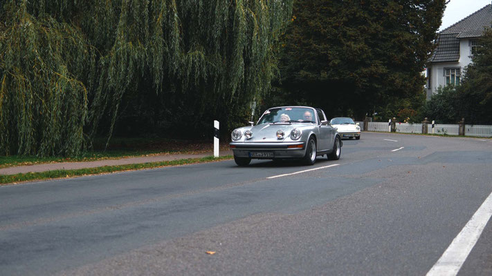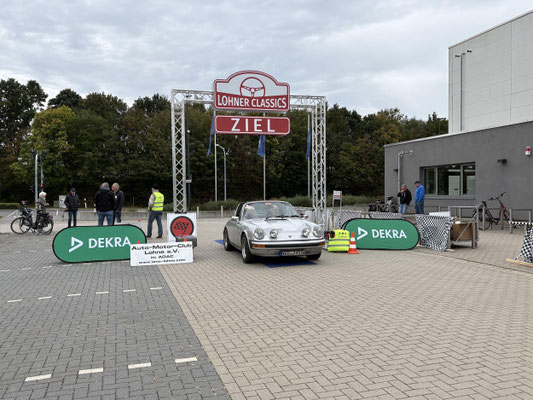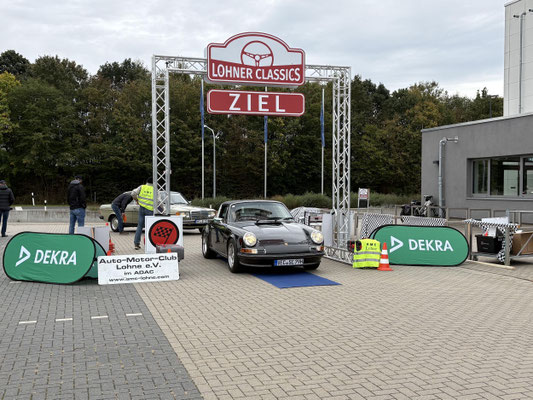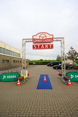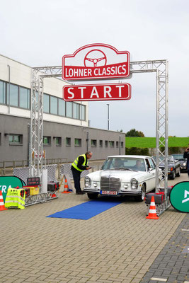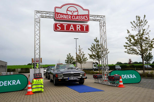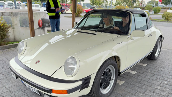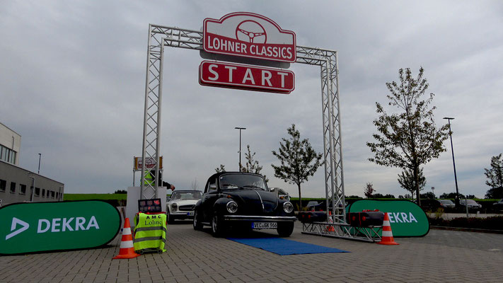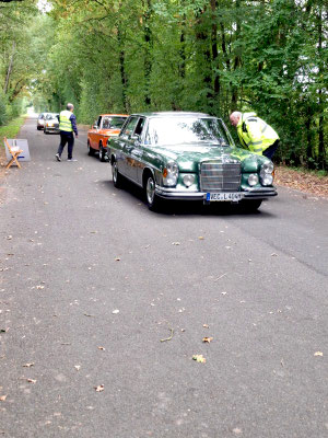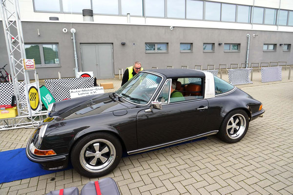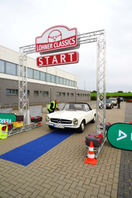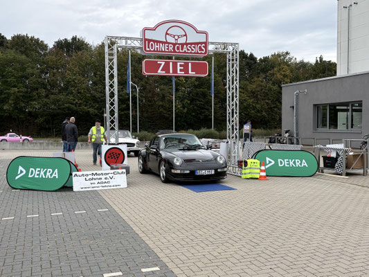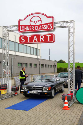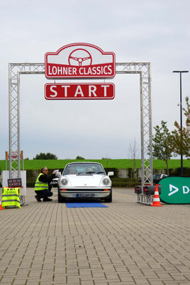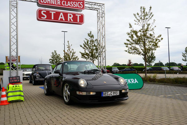 Dann ging, nach recht interessiertem Studium der Bordunterlagen und kurzer Grußansprache durch das Orga-Team mit Info zum geplanten Tagesablauf, der schöne, schwarze 911er Porsche, Typ 964, mit Startnummer 1, dem Sieger der letzten Lohner Classics, zugestanden, als Erster vom Starter angezählt, exakt um 9.31 Uhr, auf die Fahrroute.