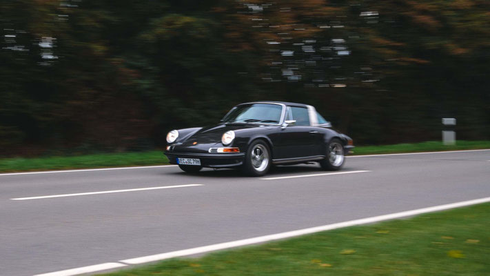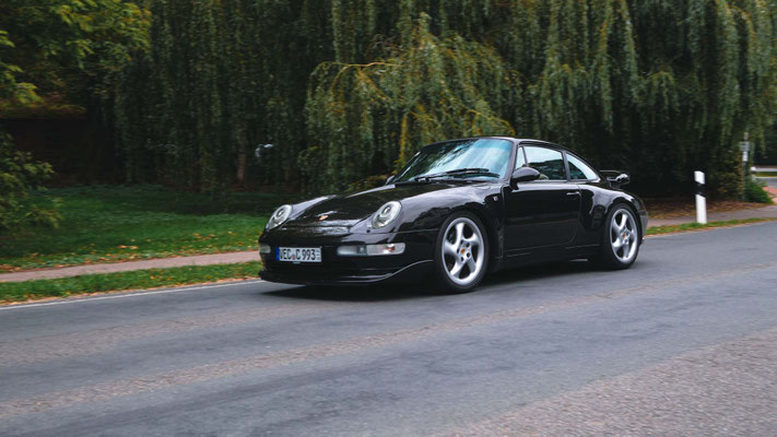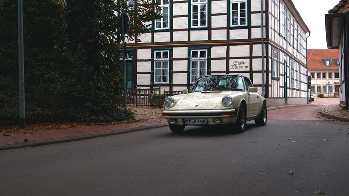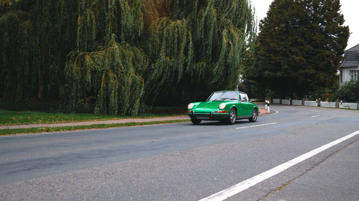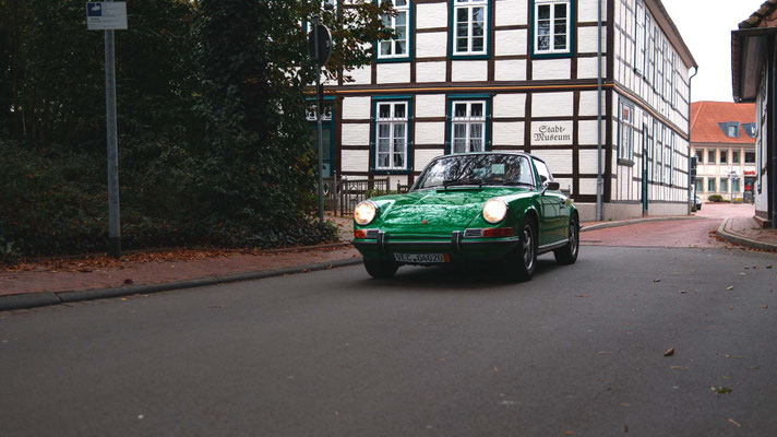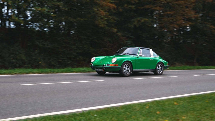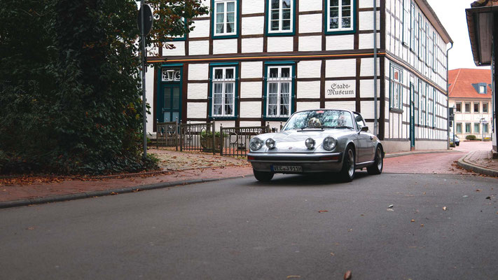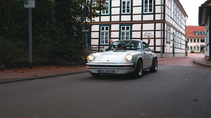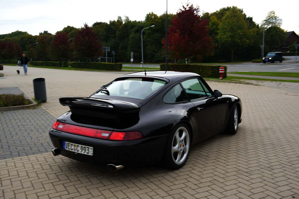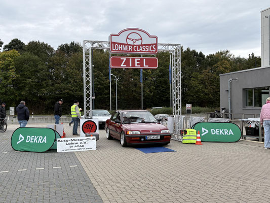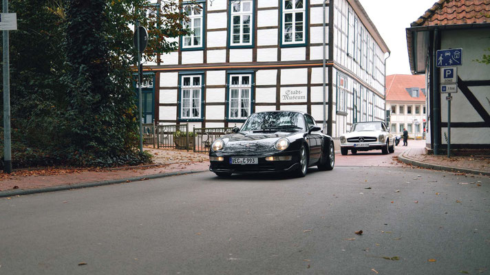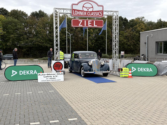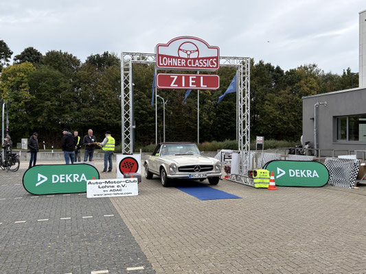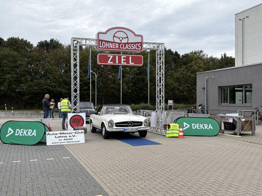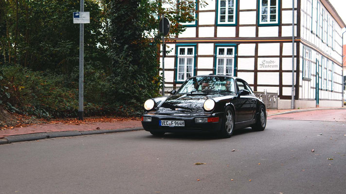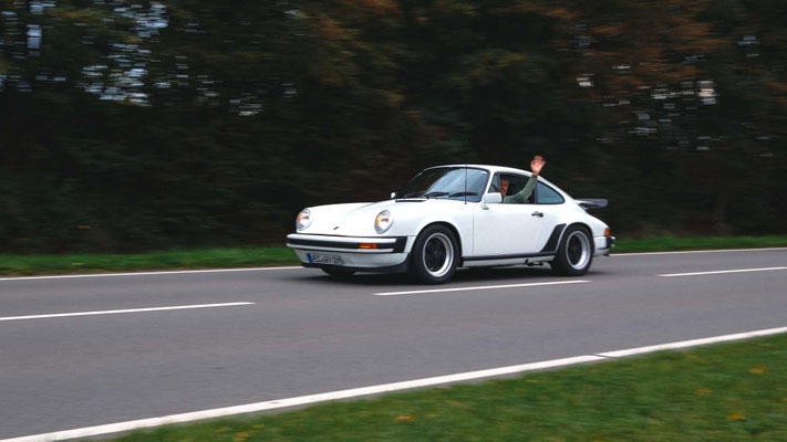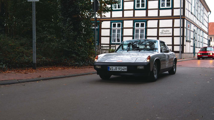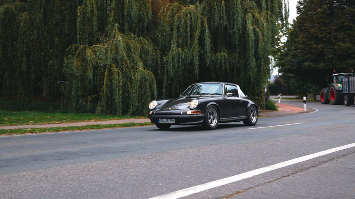 Dann ging, nach recht interessiertem Studium der Bordunterlagen und kurzer Grußansprache durch das Orga-Team mit Info zum geplanten Tagesablauf, der schöne, schwarze 911er Porsche, Typ 964, mit Startnummer 1, dem Sieger der letzten Lohner Classics, zugestanden, als Erster vom Starter angezählt, exakt um 9.31 Uhr, auf die Fahrroute.