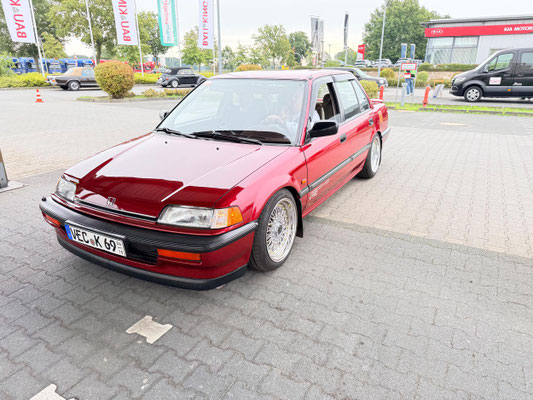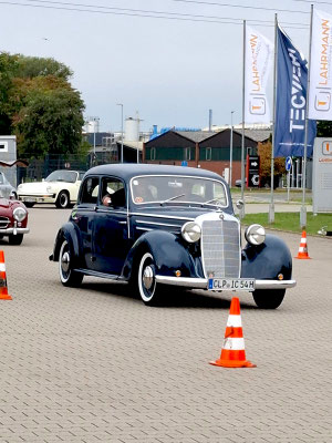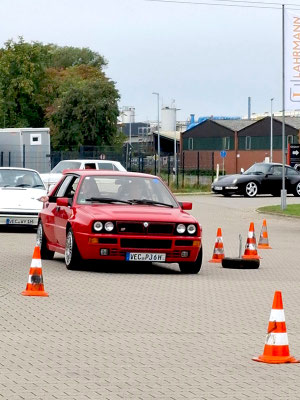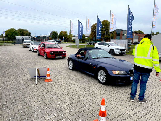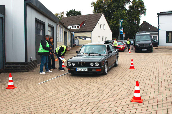 Die Leidenschaft der Fahrerinnen und Fahrer sowie die Begeisterung an der Sache sorgten von Anfang an für eine durchweg positive und mitreißende Atmosphäre. Entlang der Strecke warteten wieder verschiedene Sonderaufgaben, die die Teams nicht nur fahrerisch, sondern auch geistig herausforderten. So hatte man schon in Dinklage auf dem Betriebsgelände eines technischen Handels als erste Herausforderung für die Teams eine s.g. GLP (Gleichmäßigkeitsprüfung) mit kleiner Pylonen Gasse vorbereitet.