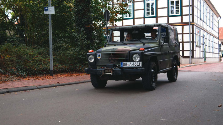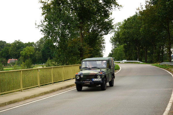 Mit einer vom Start an geltenden Beifahreraufgabe, dem Notieren von bestimmten Weges Zeichen in die Bordkarte in richtiger Reihenfolge, und einer kleinen serpentinenartigen Bergaufpassage ab Engter, ging es in Richtung Mittagsstopp zum ausgewählten Restaurant, dem Hotelgasthaus Beinker in Venne, Campemoor.