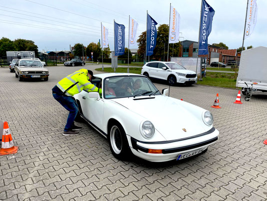 Um hier den Sportsgeist, den Ausfahrtcharakter und eine Prise Humor zu vereinen, war das aber nicht alles. Während des Zurücklegens der markierten Strecke von 35 Metern in der Vorgabe von 15 Sekunden, hatte die oder der Beifahrer/in es nicht leicht. Zum Zeitcountdown in Ansage für den Fahrer war dazu ein Ei auf einem Löffel aus dem Fenster haltend zu balancieren.